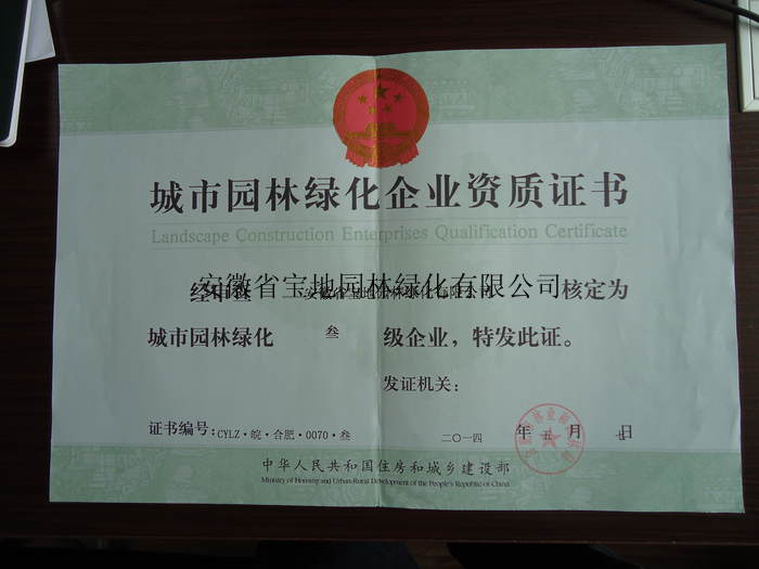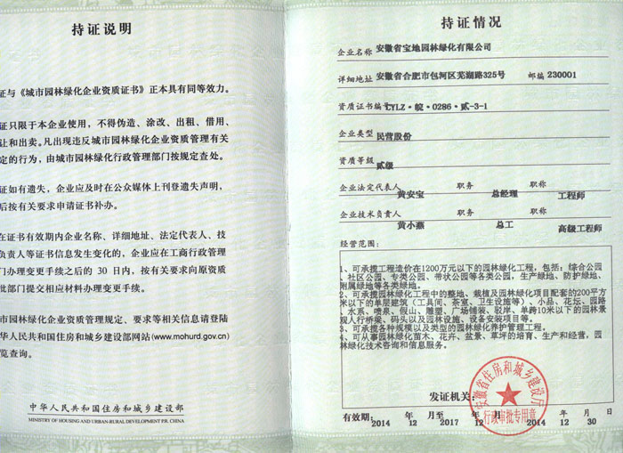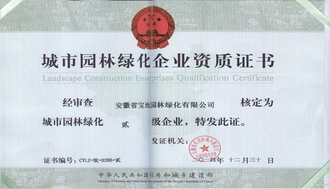城市园林绿化企业资质证书