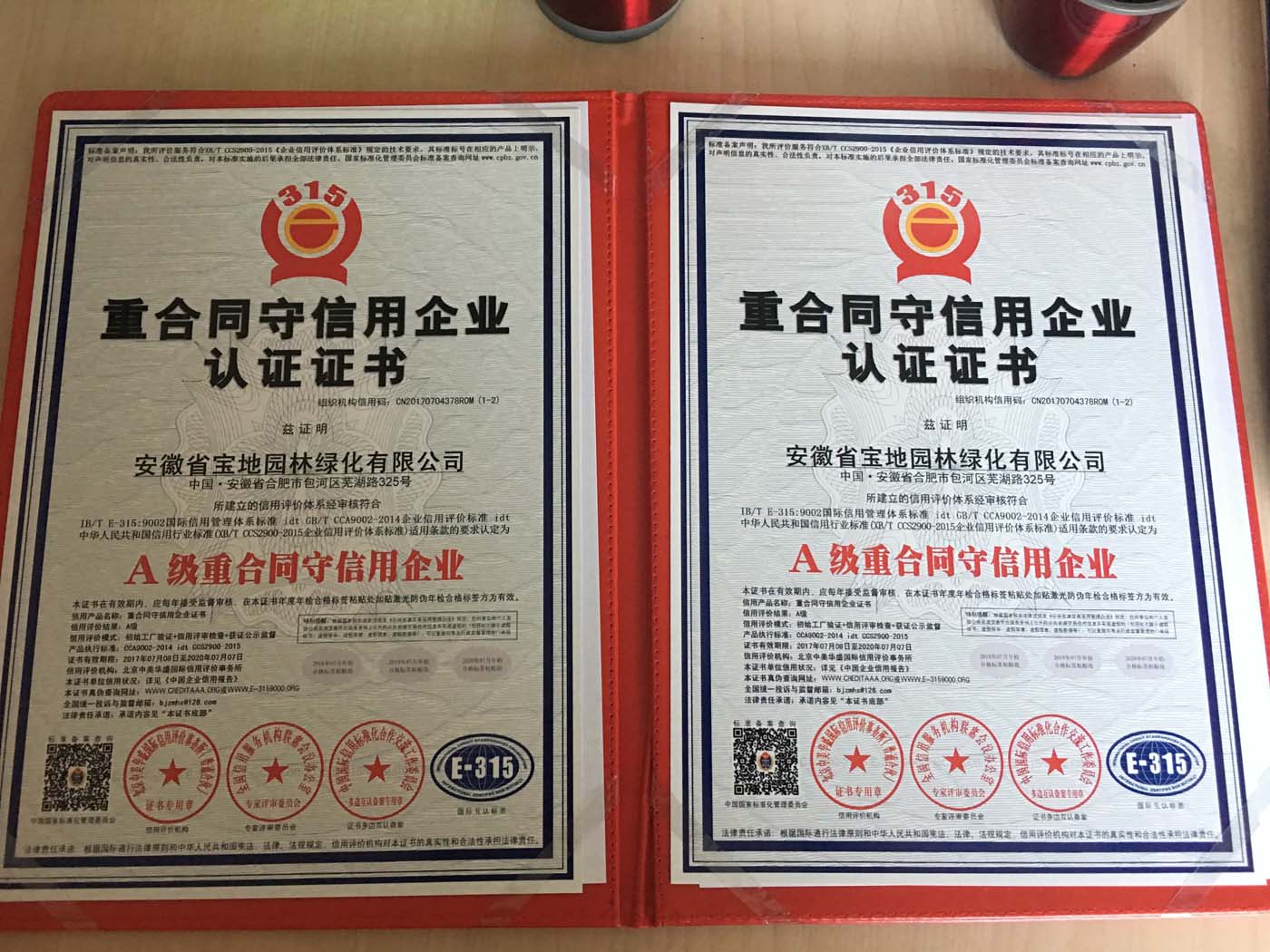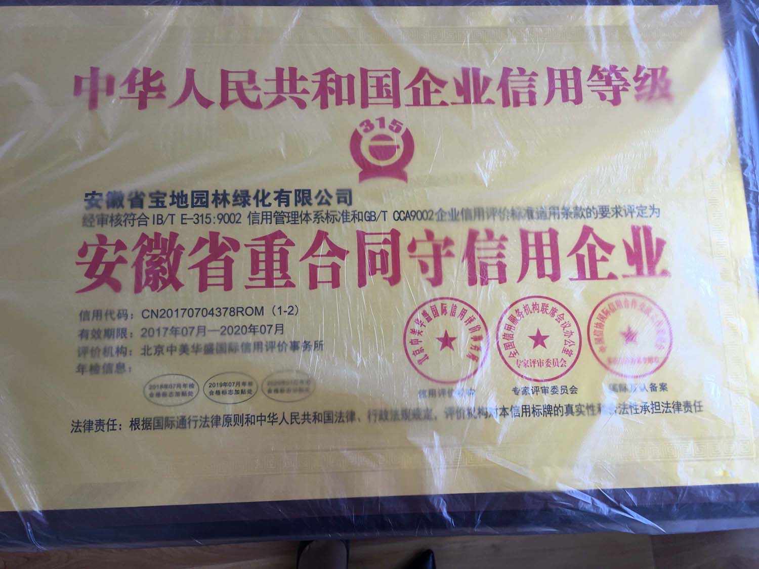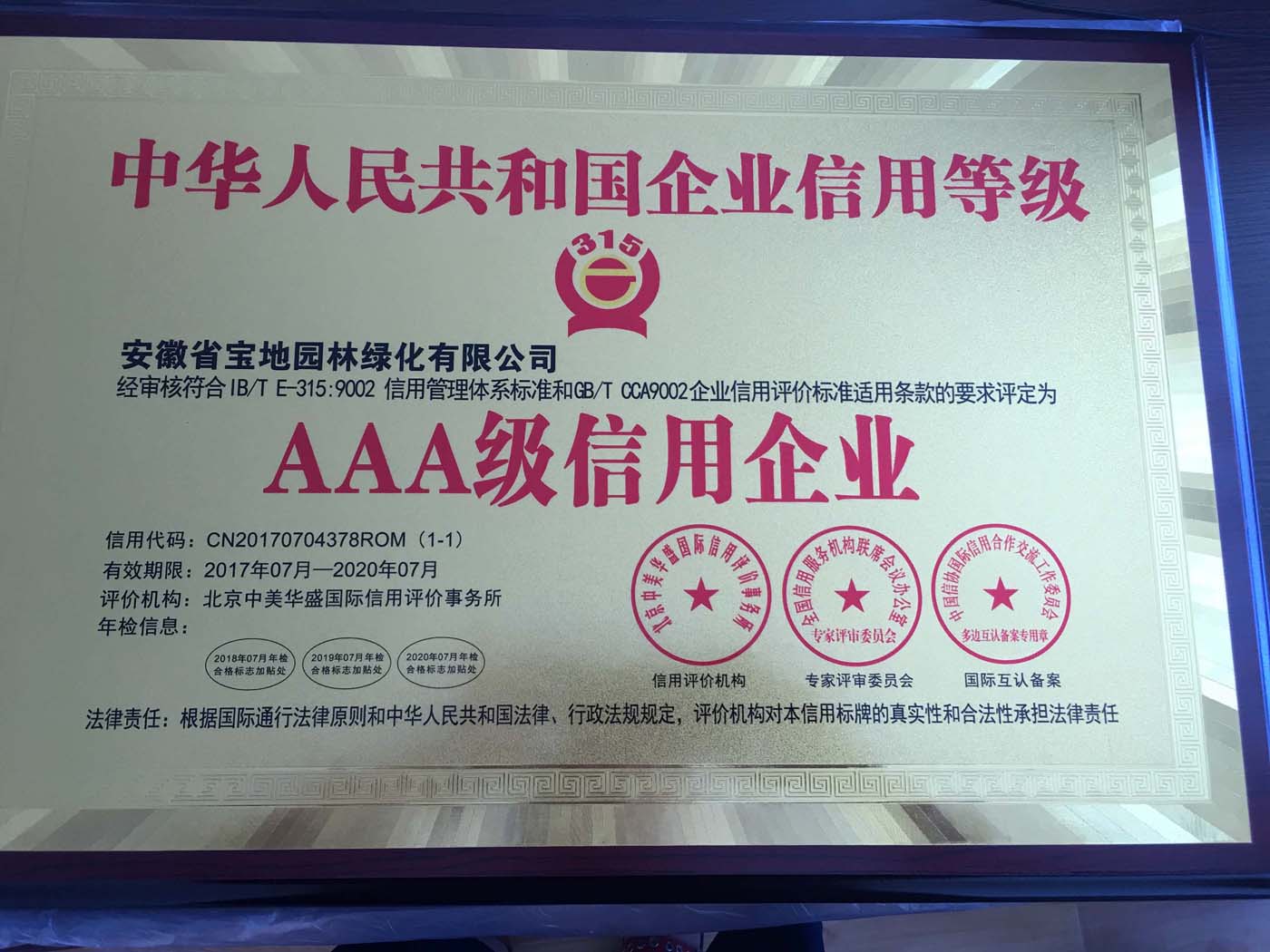 热烈祝贺宝地园林荣获国家3A级信用企业,重合同守信用企业,国际质量管理体系认证,环境管理体系认证!