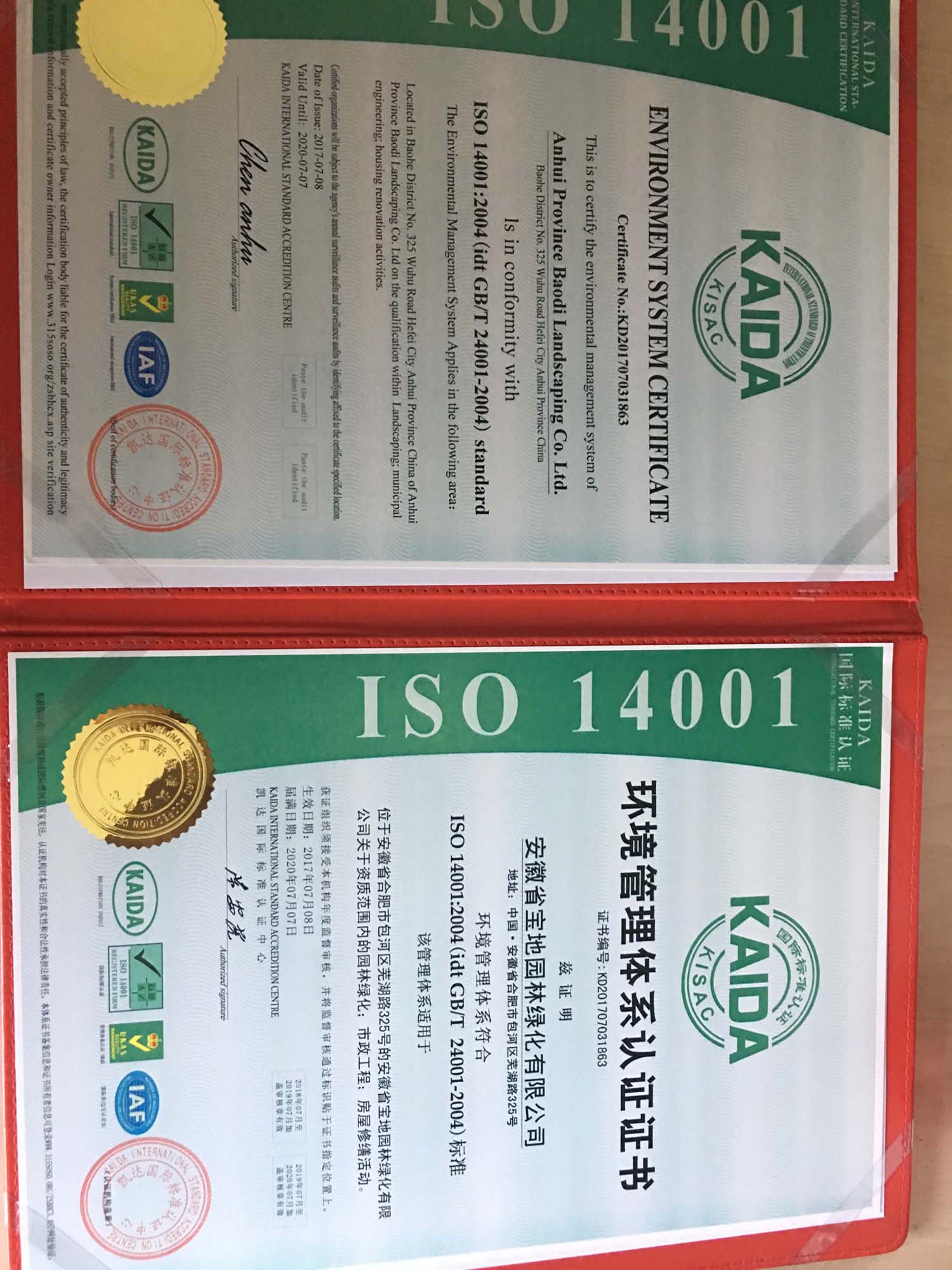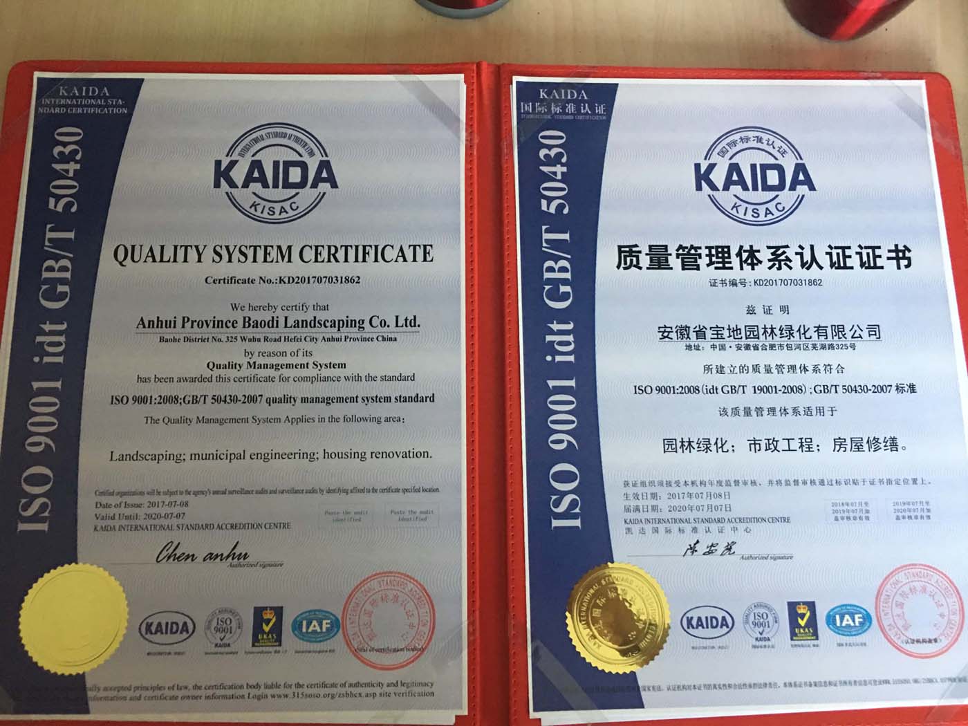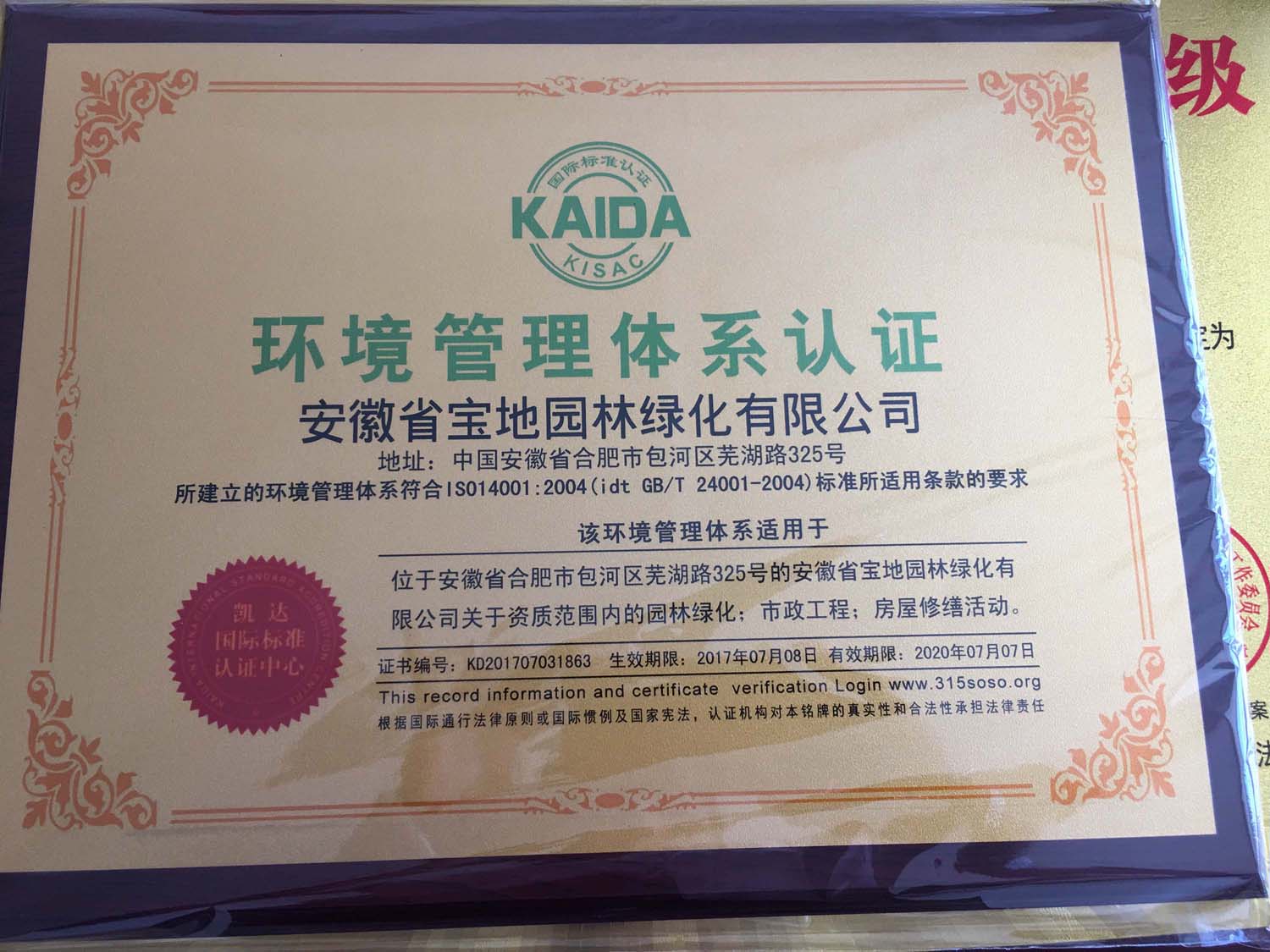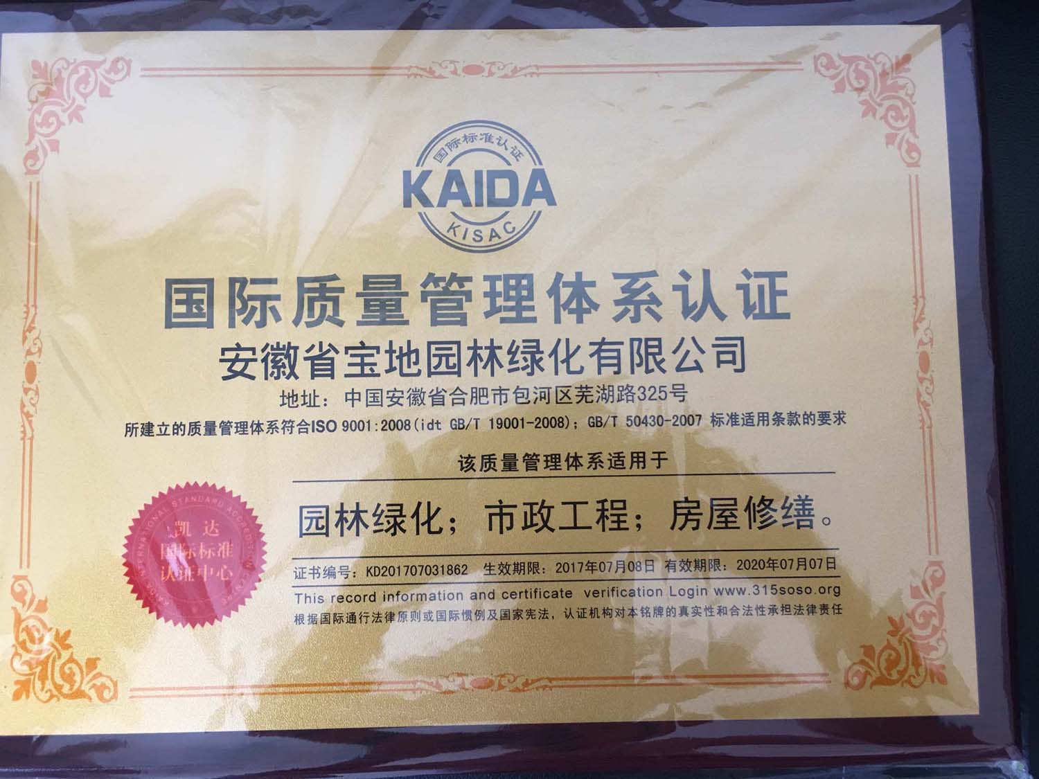 热烈祝贺宝地园林荣获国家3A级信用企业,重合同守信用企业,国际质量管理体系认证,环境管理体系认证!