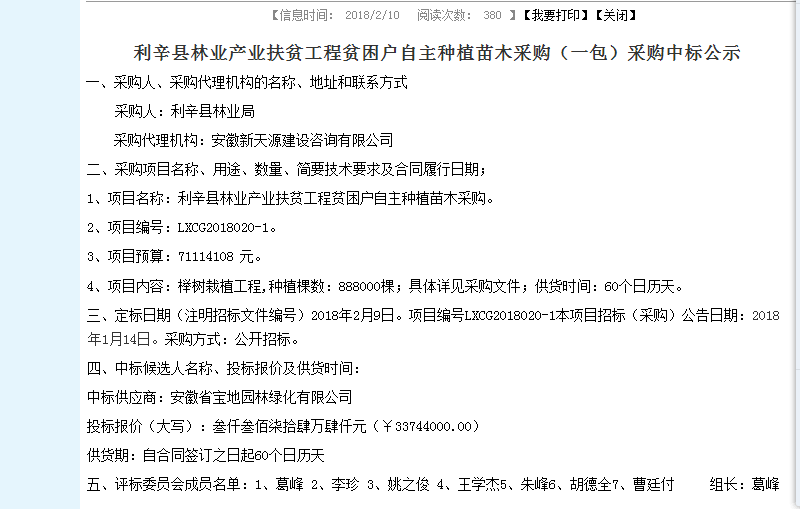 热烈祝贺本公司中标利辛县林业产业扶贫工程贫困户自主种植苗木采购一包三千万项目,本公司将再接再厉,再创辉煌。