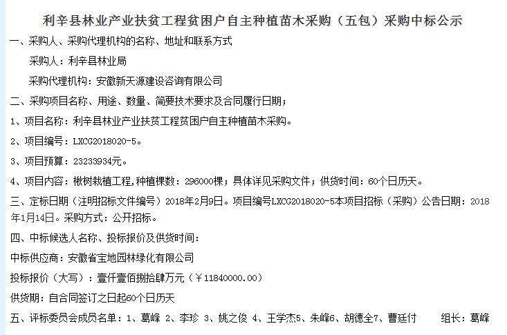 热烈祝贺宝地园林中标利辛县林业产业扶贫工程贫困户自主种植苗木采购一包三千万项目