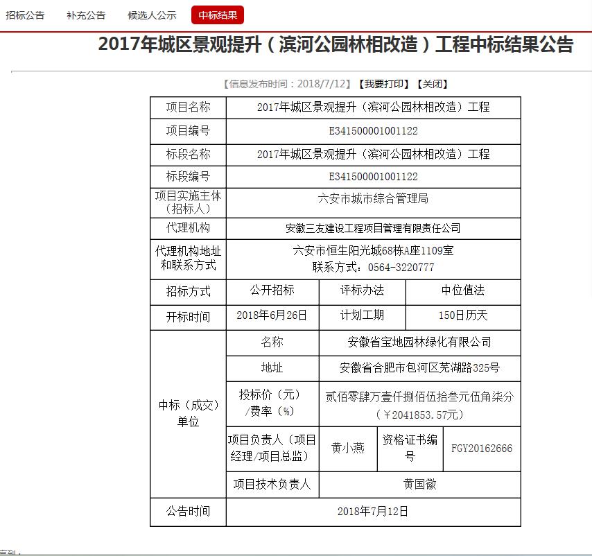 热烈祝贺我公司中标六安“2017年城区景观提升(滨河公园林相改造)工程”项目,我公司会再接再厉!!再创辉煌!!!
