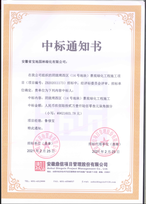 祝贺我公司(玥珑湾西区14号地块景观绿化工程施工)项目中标!!!!加油,再创辉煌!